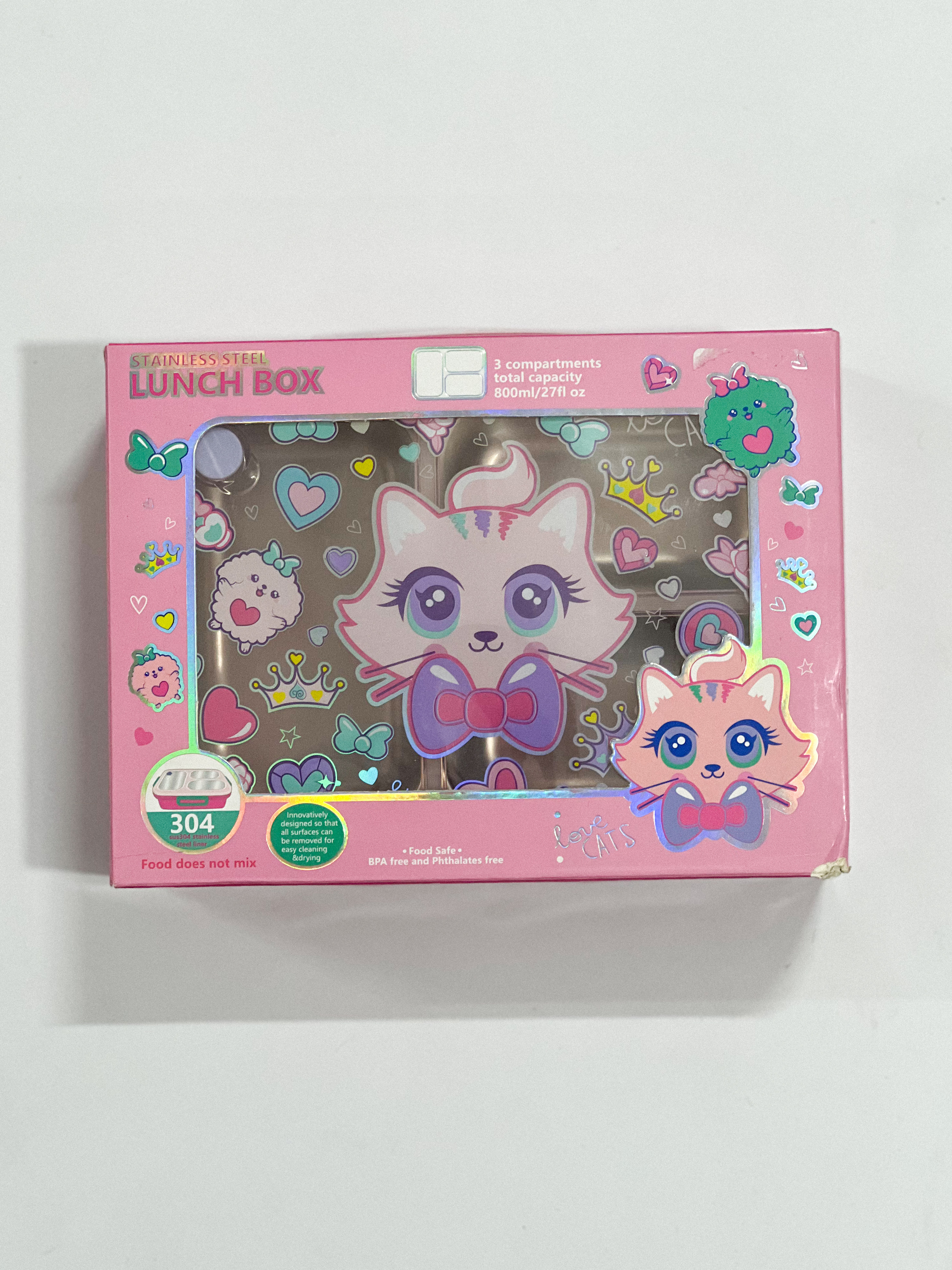 ظرف غذای استیل سهخانه ضدنشت با درب - طرح گربه وست VEST