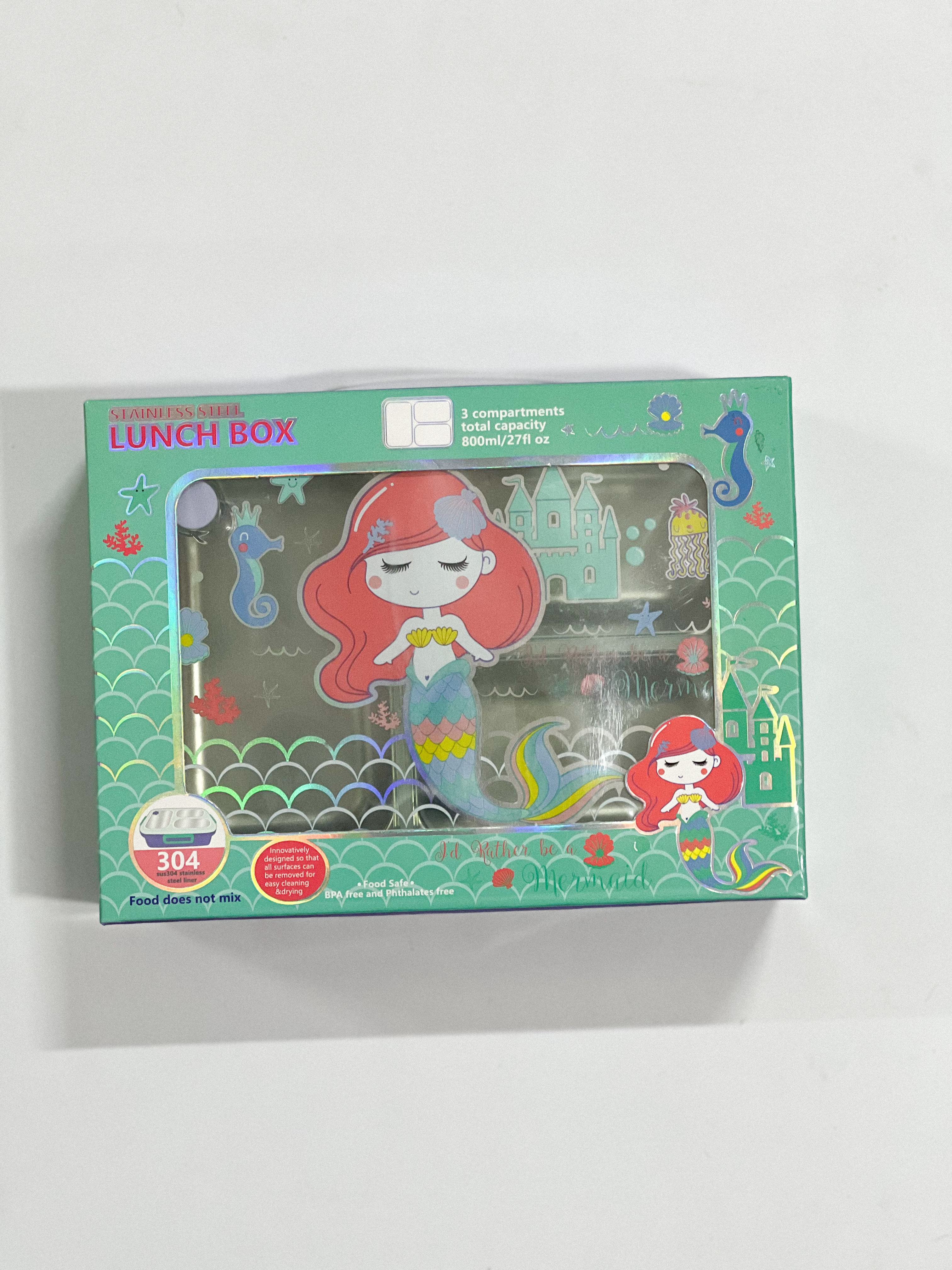 ظرف غذای استیل سهخانه ضدنشت با درب - طرح پری دریایی-وست VEST