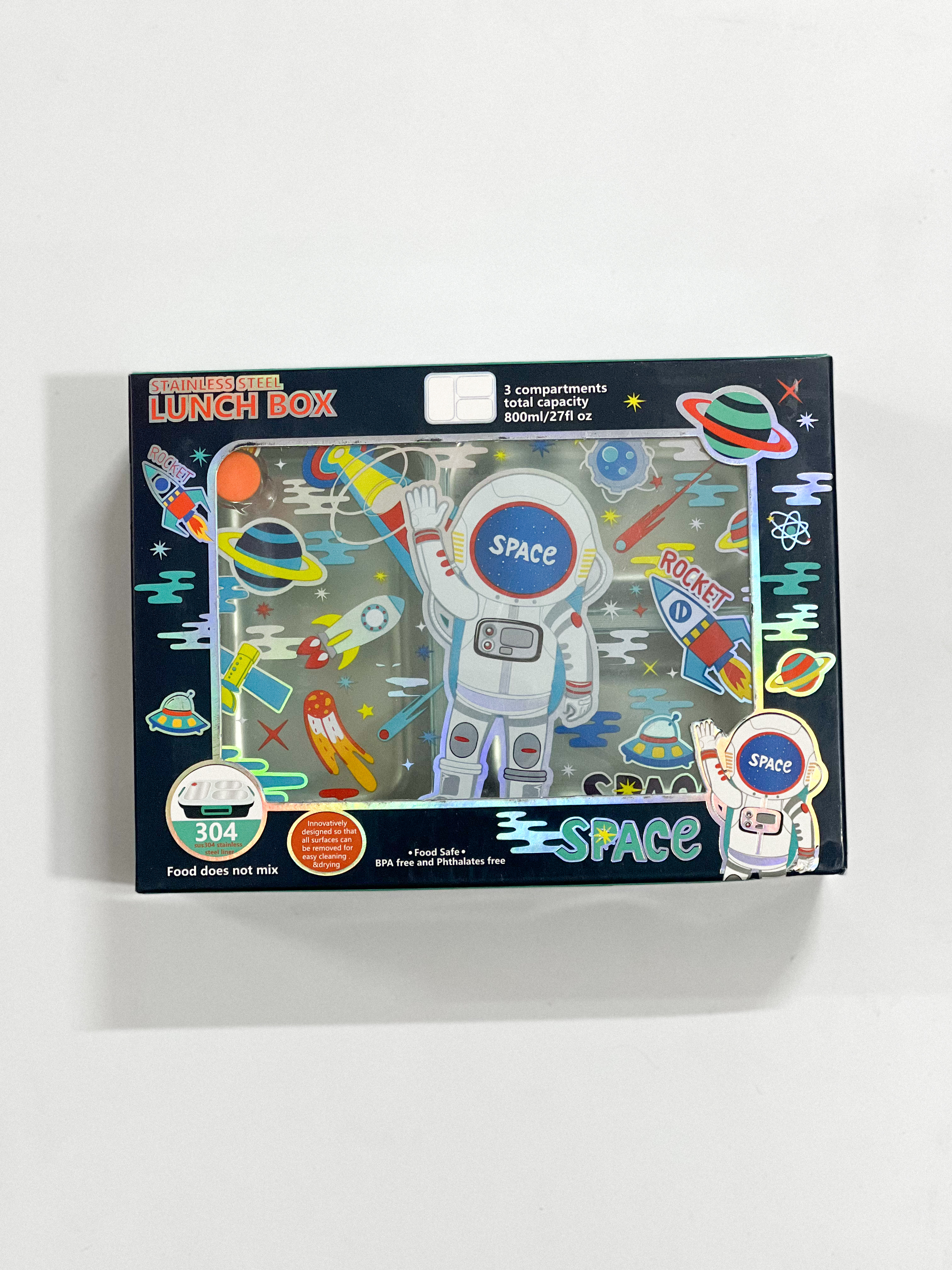 ظرف غذای استیل سهخانه ضدنشت با درب - طرح فضانورد-وست VEST