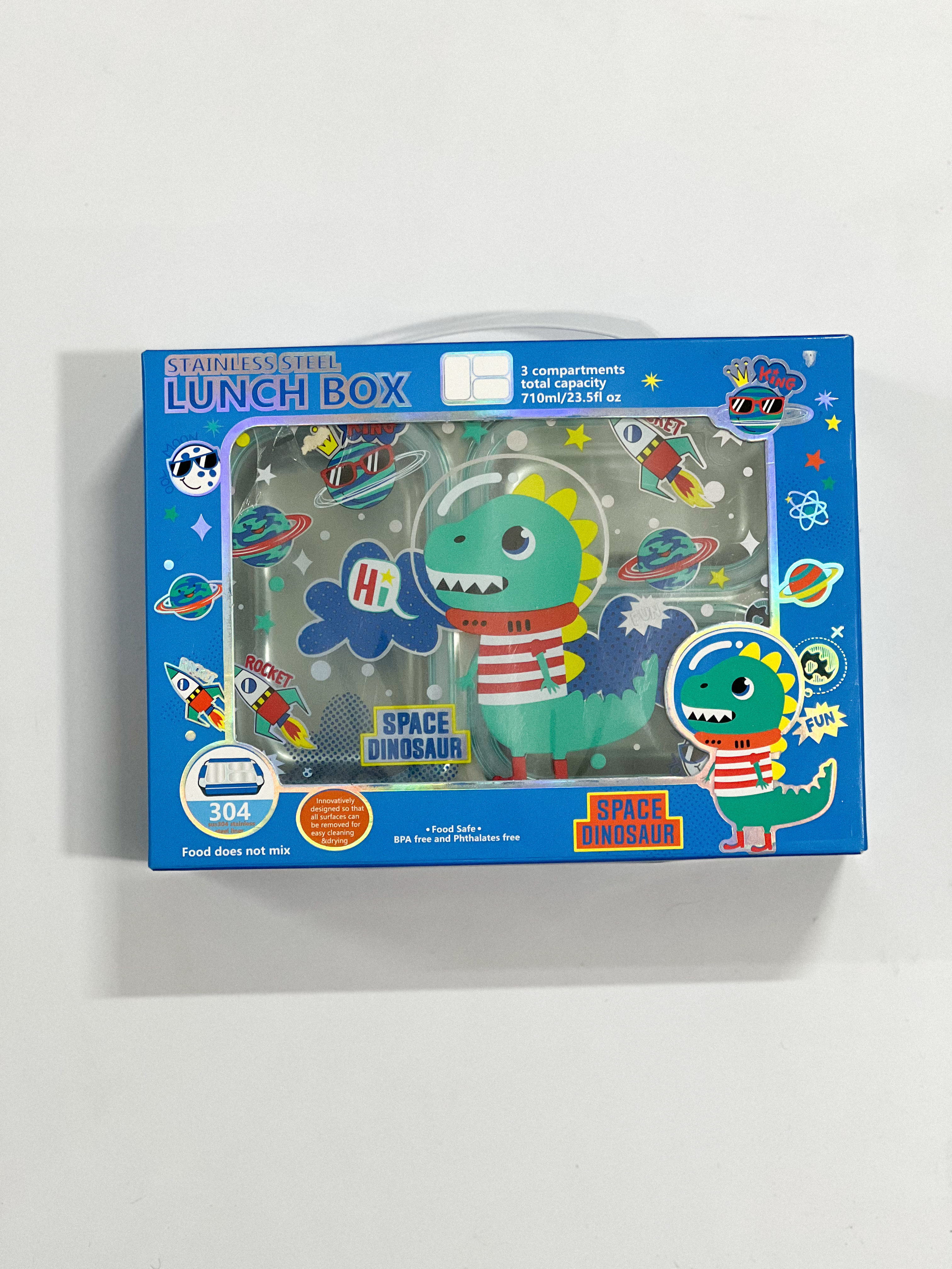 ظرف غذای استیل سهخانه ضدنشت با درب - طرح دایناسور-وست VEST