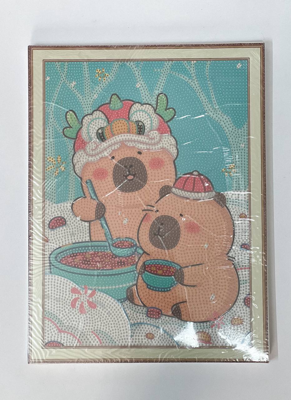 نقاشی الماسی بوم 30×30 خرس صورتی - 1000898
