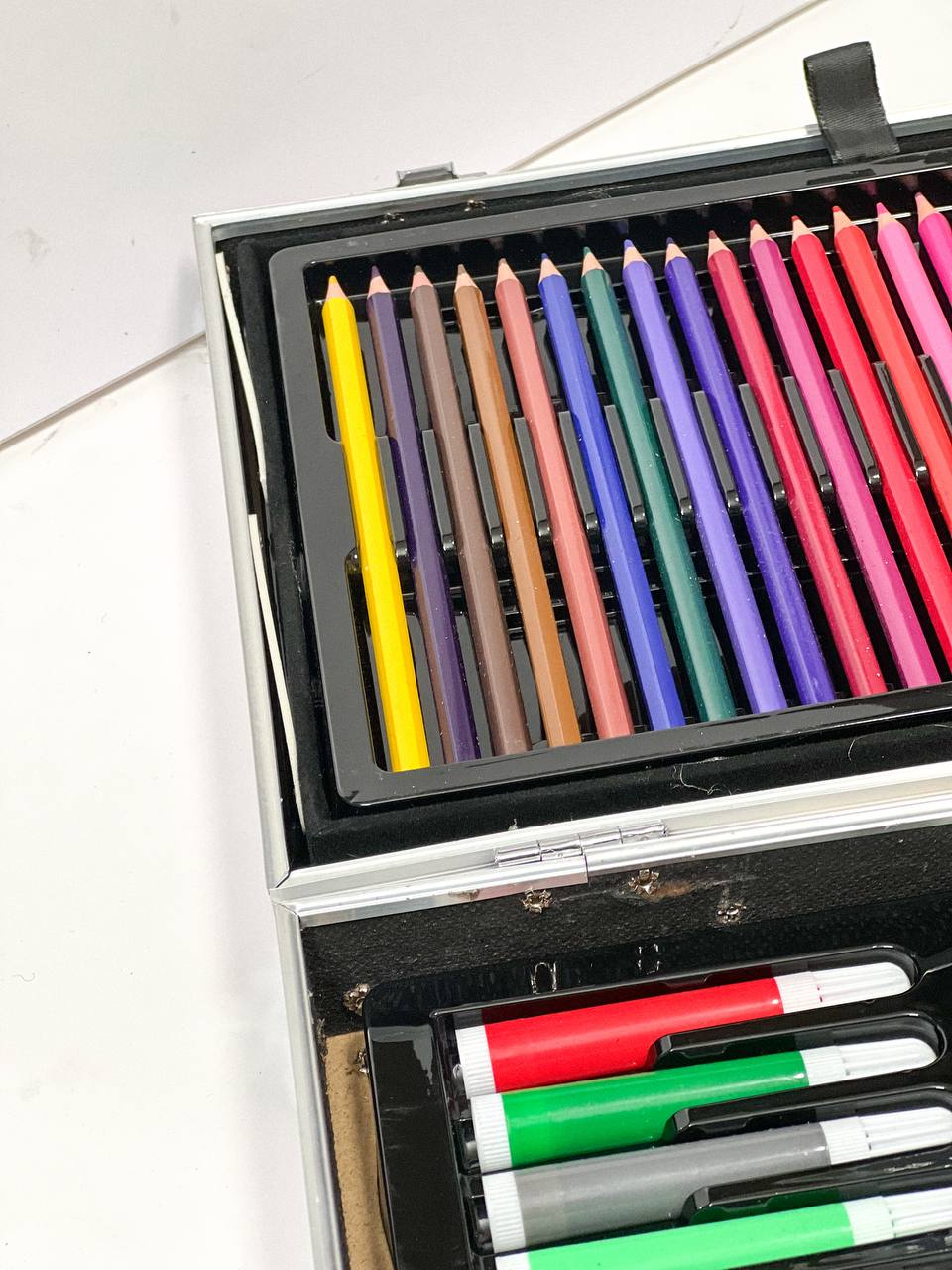 ست رنگ آمیزی 145 تکه یک هدیه بی نظیر و جذاب به دانش آموزان و هنرمندان است. این ست جذاب در یک جعبه چمدانی بسیار شیک قرار دارد. این مداد رنگی از برند universe است که یکی از بهترین و پرطرفدارترین برندهای مداد رنگی است. باخرید ست رنگ آمیزی 145 تکه فضایی یک بسته بندی کامل و عالی برای کودک خود خریداری می کنید. این ست حاوی مداد رنگی، مداد شمعی، مجموعه آبرنگ، پاک کن و بسیاری موارد دیگر است!