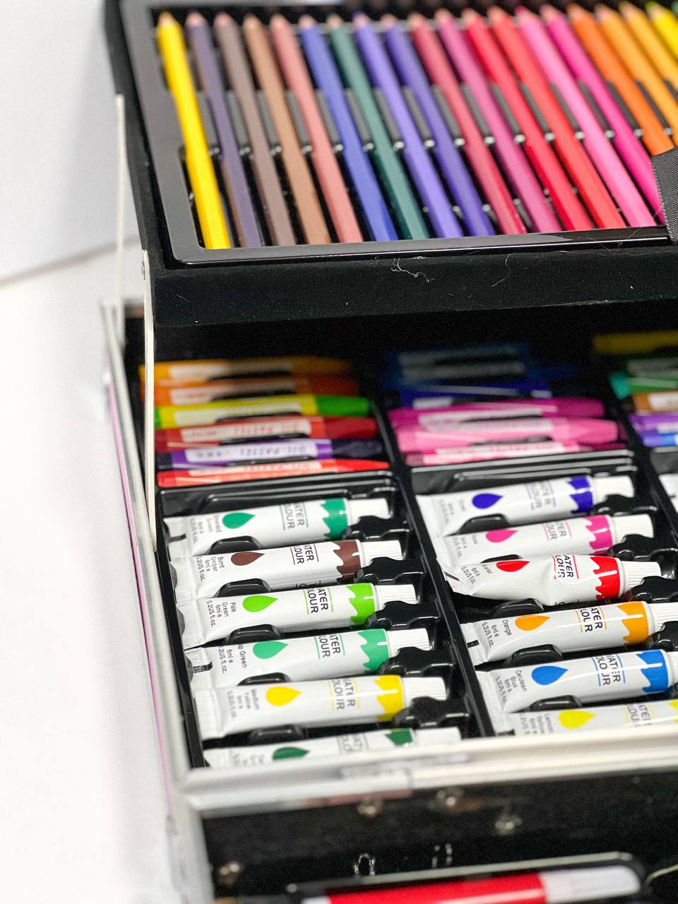 ست رنگ آمیزی 145 تکه یک هدیه بی نظیر و جذاب به دانش آموزان و هنرمندان است. این ست جذاب در یک جعبه چمدانی بسیار شیک قرار دارد. این مداد رنگی از برند universe است که یکی از بهترین و پرطرفدارترین برندهای مداد رنگی است. باخرید ست رنگ آمیزی 145 تکه فضایی یک بسته بندی کامل و عالی برای کودک خود خریداری می کنید. این ست حاوی مداد رنگی، مداد شمعی، مجموعه آبرنگ، پاک کن و بسیاری موارد دیگر است!