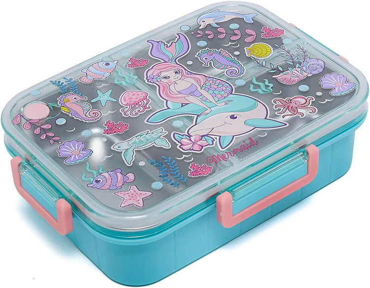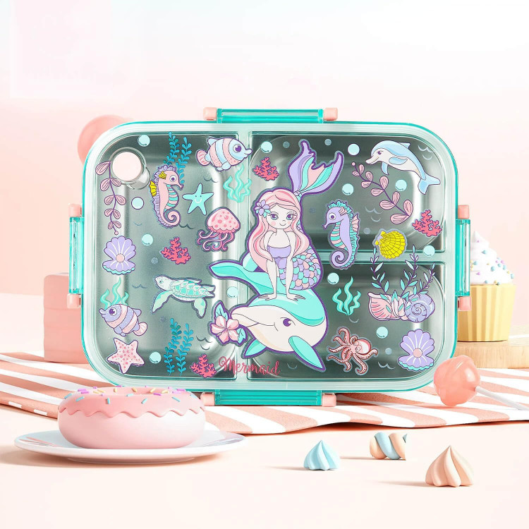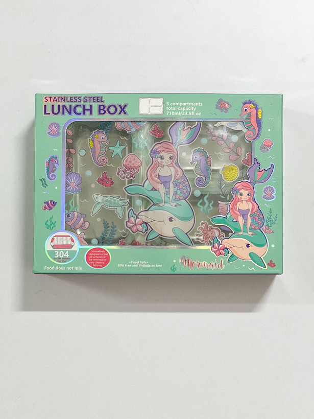 ظرف غذای استیل سهخانه ضدنشت با درب - طرح پری دریایی-وست VEST