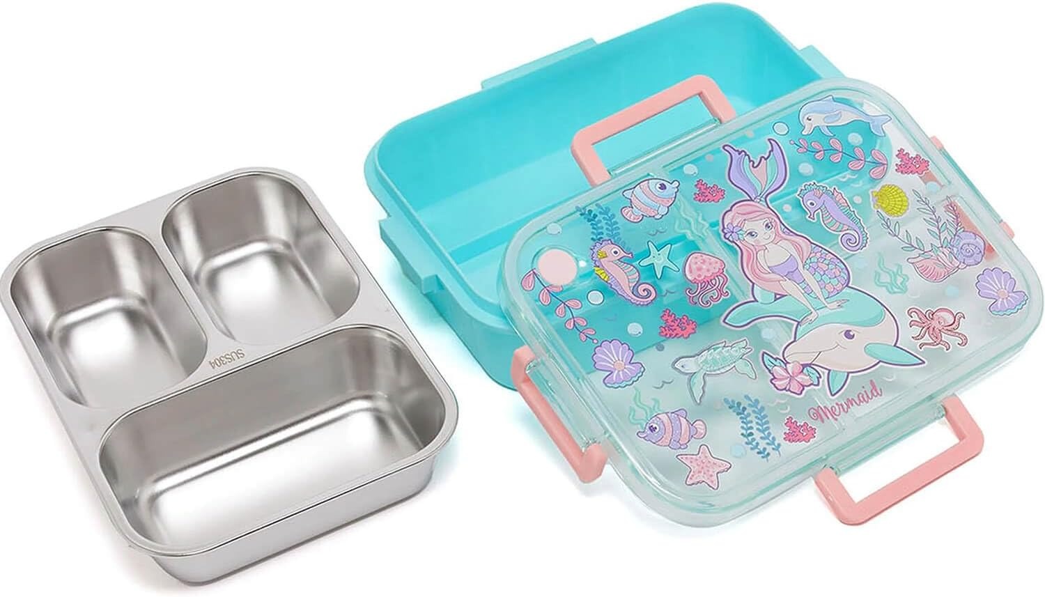 ظرف غذای استیل سهخانه ضدنشت با درب - طرح پری دریایی-وست VEST