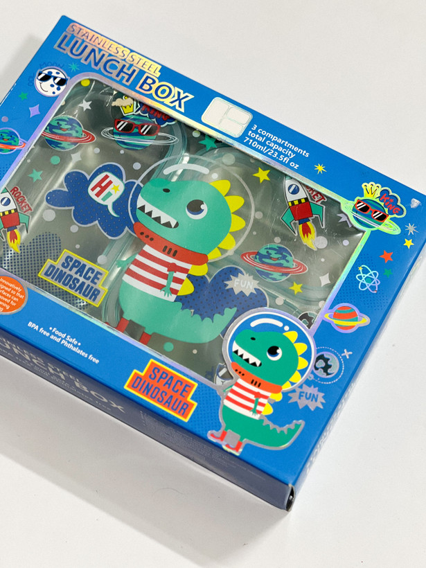 ظرف غذای استیل سهخانه ضدنشت با درب - طرح دایناسور-وست VEST