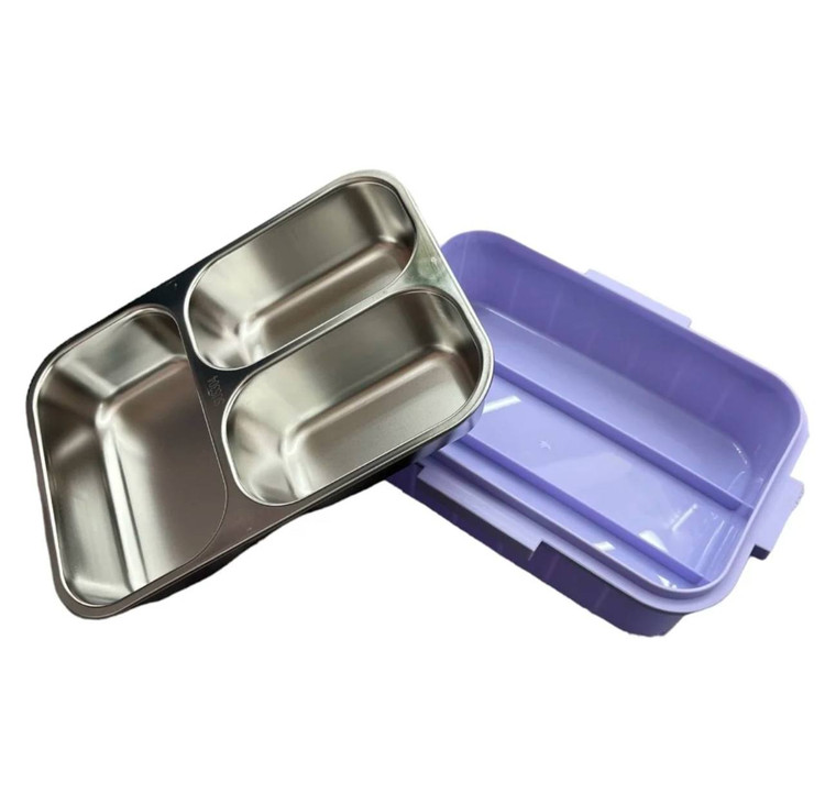 ظرف غذای استیل سهخانه ضدنشت با درب طرح پری دریایی - مناسب مدرسه، خانه و سفر (800 میلیلیتر) - 1000625
