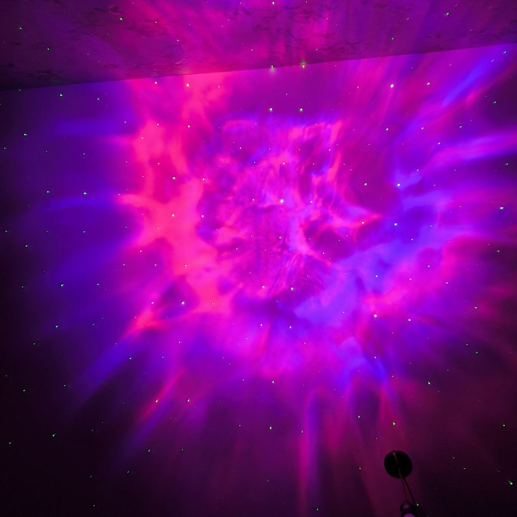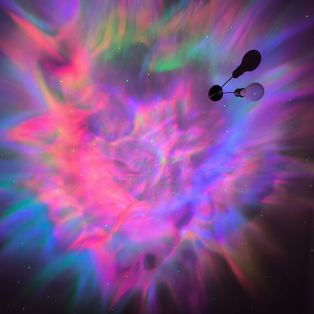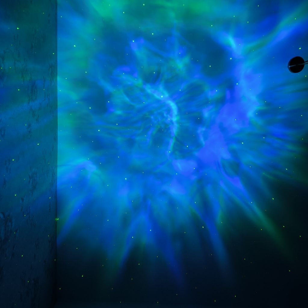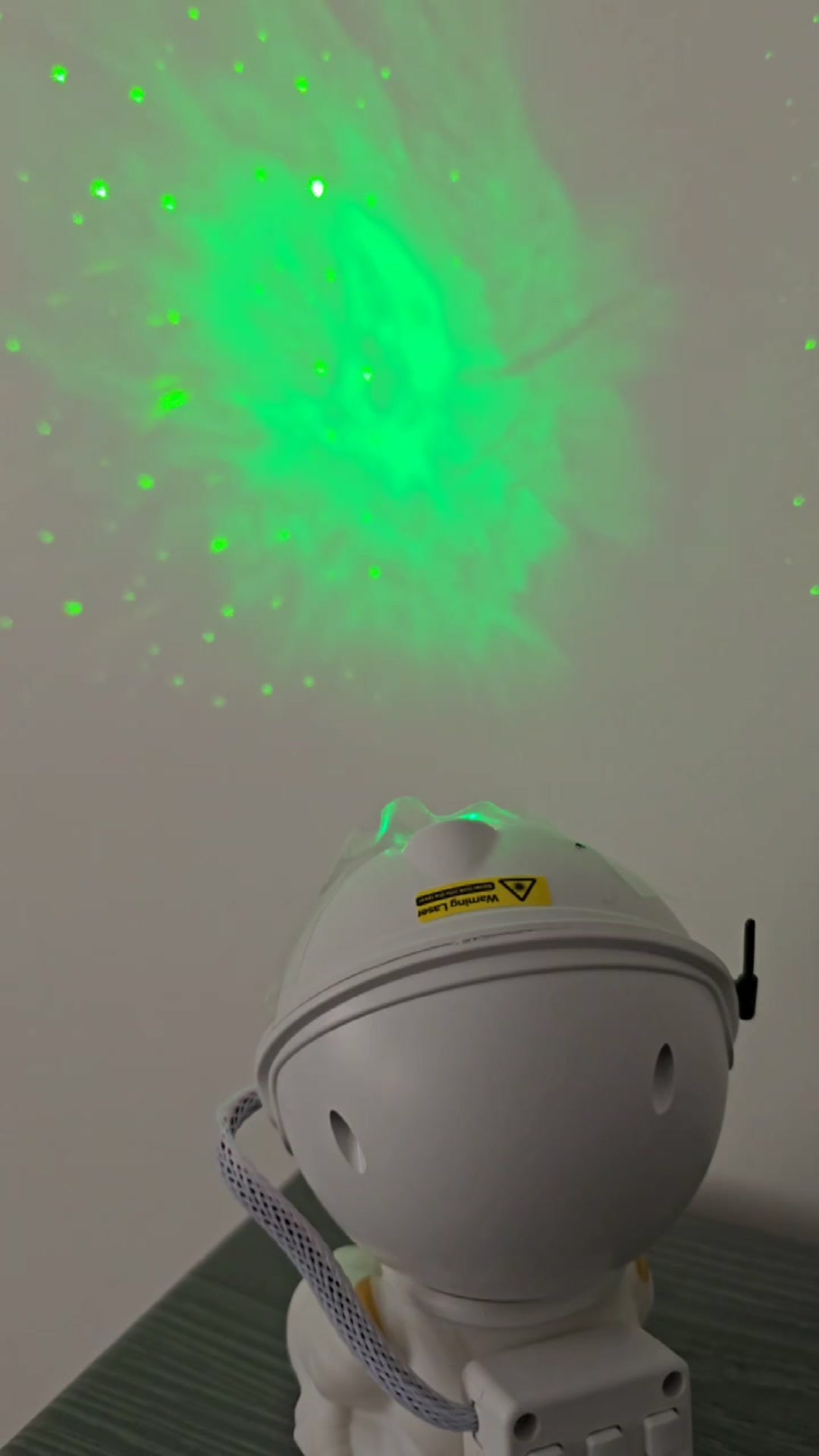 پروژکتور کهکشانی طرح فضانورد نشسته یک چراغ خواب با قابلیت پخش افکت تصویر زنده کهکشانی بر روی سقف و دیوار اتاق است که به همراه افکت لیزر ستاره ای حس یک سفر کهکشانی را قبل از خواب به شما میدهد . تلفیق همزمان تصویر زنده کهکشانی و لیزر ستاره ای جذابیت اتاق خواب شما را چندین برابر میکند . این محصول دارای ریموت کنترل نیز می باشد که میتواند نور پرژکتور یا لیزر را کم یا زیاد و یا برای روشن ماندن محصول تایمر تعریف کنید . برای روشن کردن این محصول باید از آداپتور موبایل استفاده کنید و از طریق کابل داخل بسته بندی آن را شارژ نمایید.