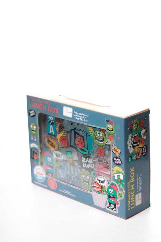 ظرف غذای استیل سهخانه ضدنشت با درب - طرح هیولا بسکتبالی وست VEST