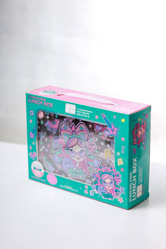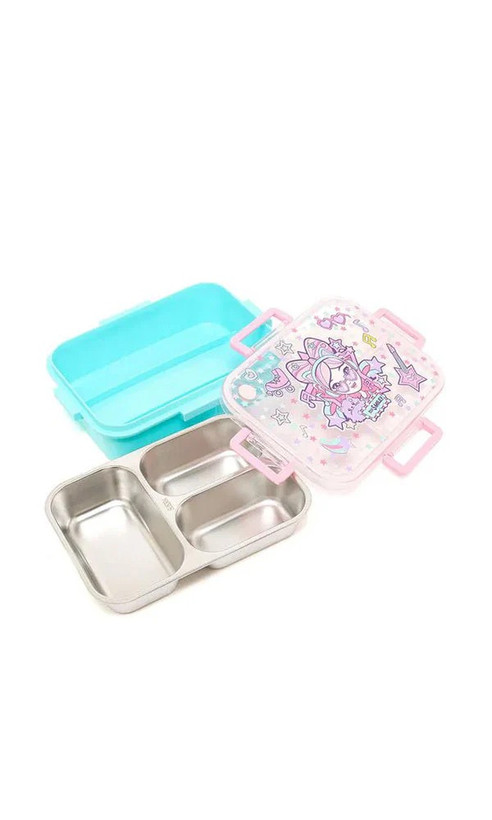 ظرف غذای استیل سهخانه ضدنشت با درب - طرح دختر وست VEST